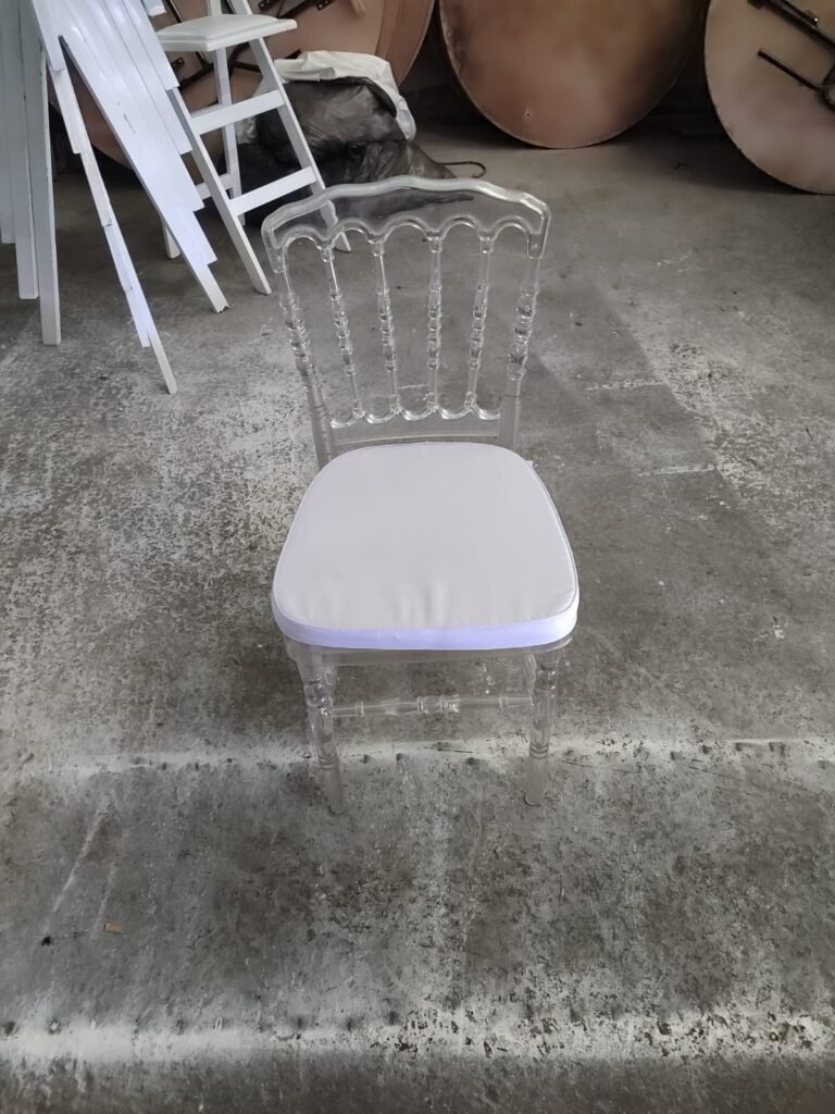 21. כסא נפולאון שקוף, מקנה אווירת אירוח יוקרתית.