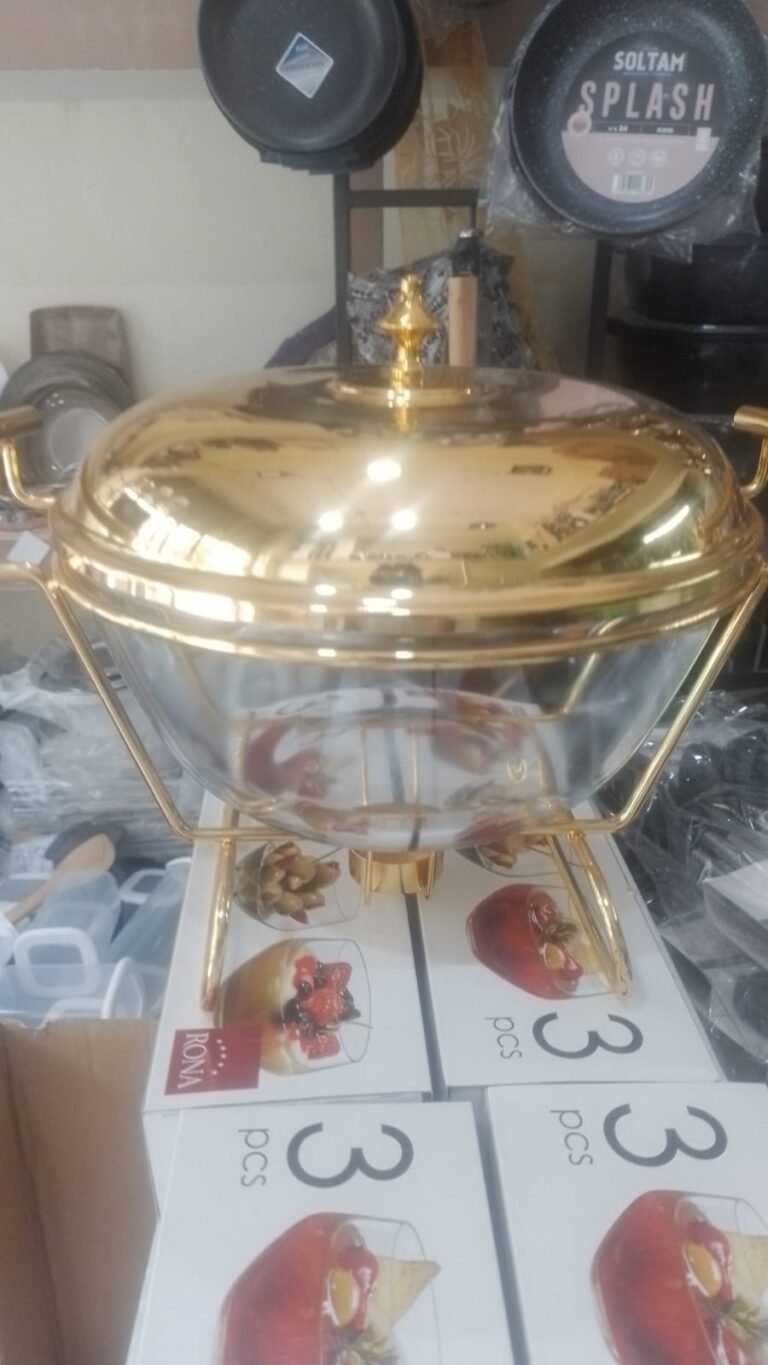 96. מעמד זהב עם מיתקן תכולה 5 ליטר עם נרות חימום מתאים למרק,,קוסקוס,,חמין,,פונצ' וכול העולה בדימיון משרה אווירה עשירה